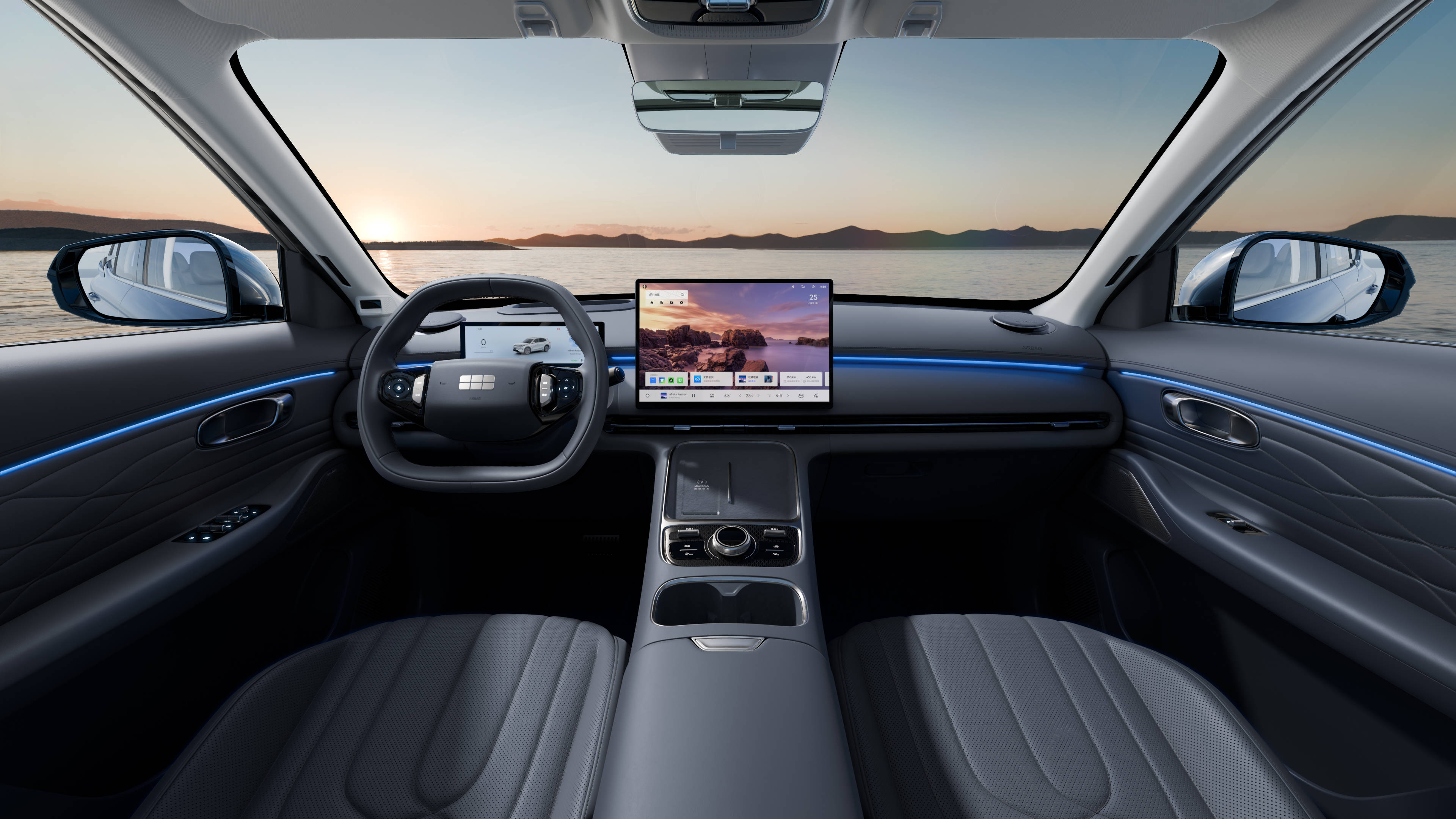 外觀方面,新車變化不大,新增了三潭映月.星海藍外觀配色。新車前臉采用封閉式格柵設計,看上去十分簡約。上方依舊保留貫穿式LED日行燈,兩側大燈點亮后十分有神,配合霧燈區域營造出的X造型,營造出很不錯的運動感。新車升級了AGS主動進氣格柵,使得純電動續航能力增加了5km。此外,前翼子板的兩側和后擾流板的位置都增加了攝像頭,前擋風位置被升級為雙目攝像頭,前后包圍處增加了更多的雷達設備,千里浩瀚H3方案將升級,支持高速領航駕駛輔助、智能泊車輔助等功能,外后視鏡上還配備了“智駕小藍燈”,這使得科技和實用性都得到了提升。車身尺寸方面,長寬高分別為4740/1905/1685mm,軸距2755mm,值得一提的是,它的風阻系數為0.288。