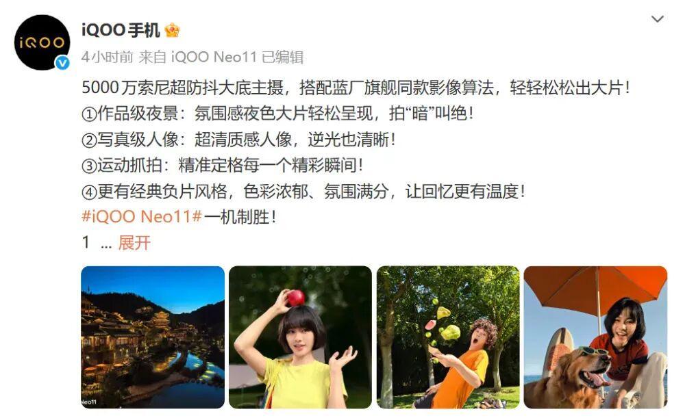 下周見!iQOO Neo11再預熱:搭載5000萬像素超防抖大底主攝